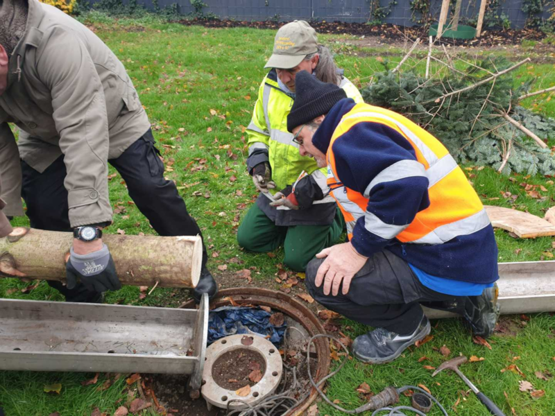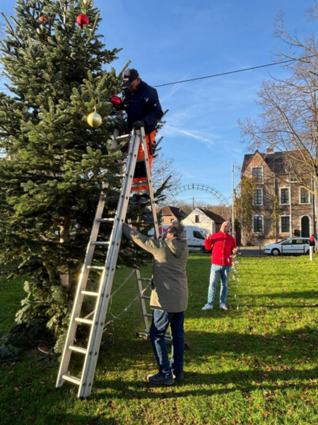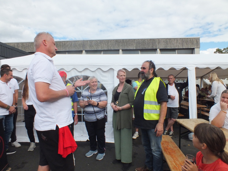 Dissemond's Freizeitteam - Gewinner des Shell-GODING Fußballturniers 2015, flankiert von Dr. Zengerly (l), dem Direktor der Shell Rheinland Raffinerie und Klaus Kaden (r), Vorsitzender der GODING.