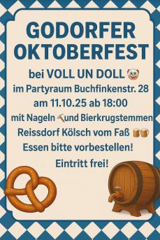 Am Samstag, den 15.11.2025 findet in der Aula der Johannes Gutenberg Realschule Godorf Eingang Buchfinkenstraße wieder ein Seniorenfest statt. Zu diesem sind die Godorfer Seniorinnen und Senioren ab 63 Jahre, mit und ohne Begleitung, herzlich eingeladen. Bitte sprechen Sie auch Ihre Nachbarn an, da die Adressen für neue Teilnehmer nicht zur Verfügung stehen.
